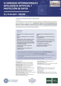 La Red Iberoamericana de Investigación Interuniversitaria para el Diálogo Jurídico entre Europa y América (REDIJEA), en conjunto con las Facultades de Derecho de la Universidad Nacional de Educación a Distancia (UNED), la Universidad de Girona (UdG) y la Universidad de Almería (UA), convoca los días 9 y 10 de abril de 2025 la celebración de las IV JORNADAS INTERNACIONALES:INTELIGENCIA ARTIFICIAL Y PROTECCIÓN DE DATOS.